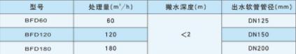 BFD浮簡式尾水器由浮筒,導水口,滑桿架出水軟管,出水竹節法蘭等部件組成,不需要動力,在氣和沉淀階段,水器浮于水面,處以待機狀態其外口軟管中所積清水形成水封,避免臟水進入外管搬水開始,電動閥門打開,池中的上清夜被排除,隨著水位的下降,浮筒在支架的導桿中徐徐向下滑動當水位降到zui低水位時,關閉電動閥門,排水結束,設備外形和技術參數見圖表