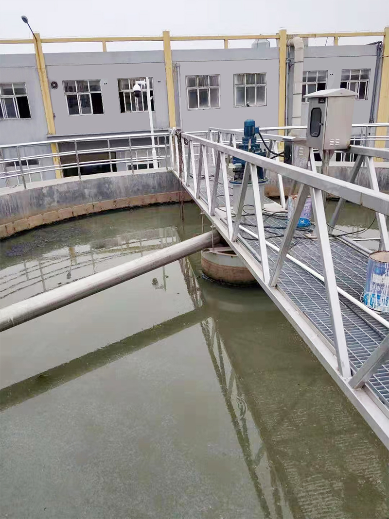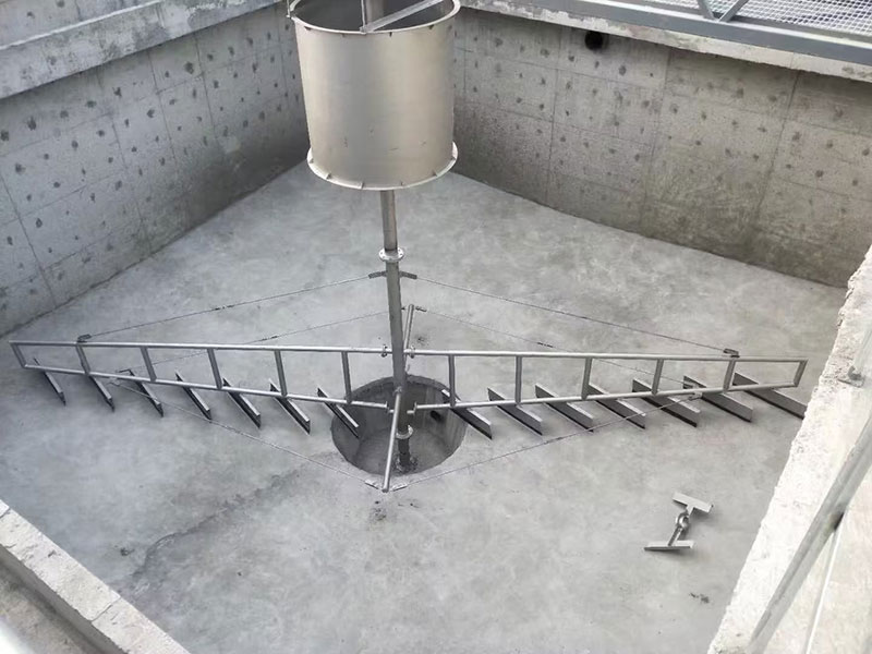 中心傳動懸掛式濃縮機由帶電動機立式減速機、回轉軸承、主軸、刮臂、刮板、濃集柵條,穩流筒、控制柜等組成。制臂在驅動裝帶動下繞中心軸旋轉,刮臂上的刮泥板沉積在池底的污泥由外向內推向池心集泥坑。當運行過程中,由于刮板、臂受異物卡塞或積泥過多等意外原因導酸傳動過,過保護機構動作,切斷電源,自動報警停機