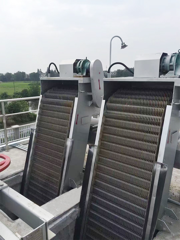 按水流方向耙齒鏈類同于格柵,在耙齒鏈軸上裝配的耙齒間隙可以根據使用條件進行選擇。當耙齒把流體中的固態懸浮物分離后可以保證水流暢通流過。整個工作過程是連續的,也可以是間歇的。