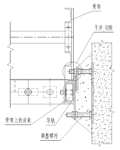 (2)骨架整體進入槽鋼導軌后,讓骨架上、下移動數次,經檢查無卡阻后,再將導軌焊接、灌漿。