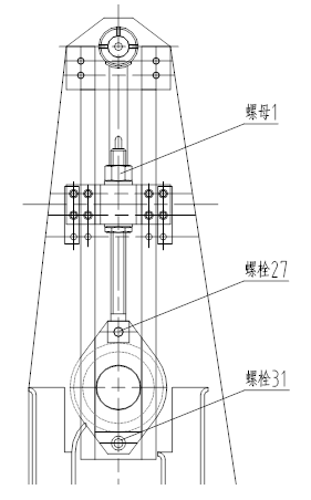 1)松開螺栓27、31,用長臂桿轉動螺母I,使兩條運輸鏈松緊程度一致。調整后的鏈條在工作狀態時(即工作邊張緊)松邊兩個板刷間的鏈條彎曲垂幅值在15-22mm之間。