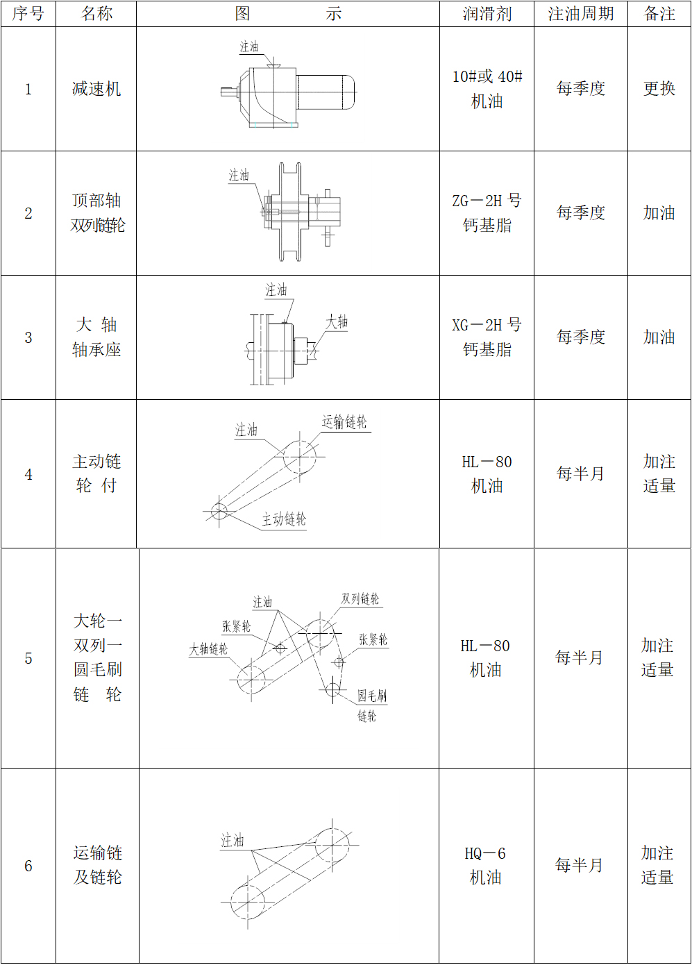 (2)格柵投入運行后,應定期對各要求潤滑的部位,按要求進行加油潤滑。(如潤滑部位圖)