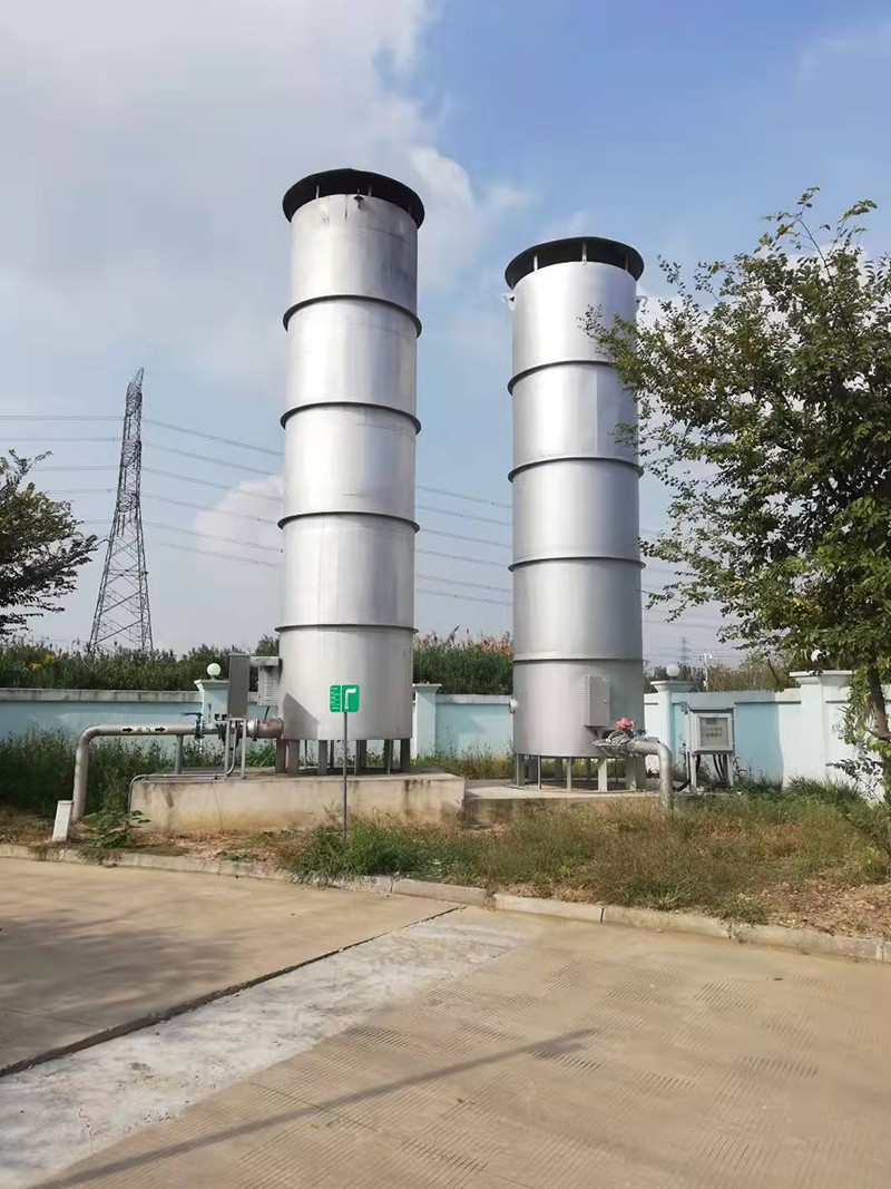 集成裝置收集污水厭氧處理中產生的沼氣,通過管道輸送至沼氣火炬。壓力控制以檢測管內氣壓,當壓力達到設定值時,氣動點火裝置,打開氣動閥,沼氣通過阻火器至燃燒器,與空氣混合燃燒,經排氣孔排入大氣,當管道內太壞力低于設定值時,關閉閥門,結束燃燒。